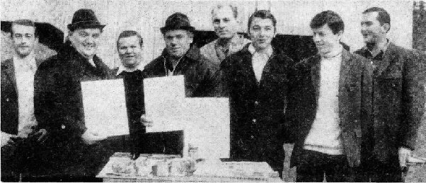 Foto: Die Sieger der Vereinsmeisterschaft und des Pokalschießens 1975 mit ihren Trophäen