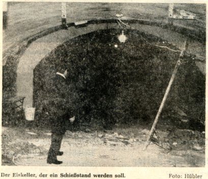 Die Pistolenschützen von Chammünster haben etwas entdeckt, was sie sich für ihre Zwecke nutzbar machen wollen: einen Eiskeller der Brauerei Hintereder, der seit 1965 brachliegt. Daraus soll ein Schießstand werden. Aber ohne Fleiß kein Preis. Eine Menge freiwilliger Arbeitsstunden müssen die Pistolenschützen noch auf sich nehmen, um aus einem Eiskeller einen Schießstand zu machen. Devise also: Freiwillige vor! Auch benötigt man noch ein wenig Geld, oder gar viel, damit alles so wird, wie es sich die Chammünsterer Schützen denken. Wenn benachbarte Vereine Zuschüsse geben, hofft man, in drei bis vier Wochen aus dem Ärgsten raus zu sein, sodass im Herbst mit dem Schießen begonnen werden kann.